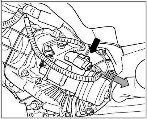 3. Кабельный разъем блокировки межосевого дифференциала -стрелка- отсоединить от серводвигателя.