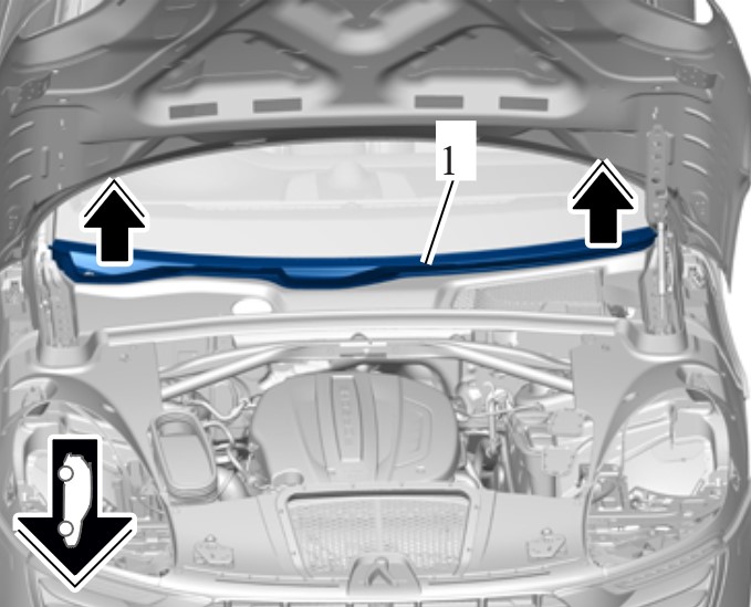 1. Отсоединить накладку -1- водоотводящего короба движением наверх и снять движением вперед.