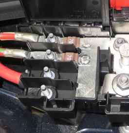 Рис. 3. В моторном отсеке в направлении движения справа расположена точка подключения внешнего источника питания с плюсовым штифтом, защищенная пиропредохранителем на АКБ на случай столкновения. Линия от штифта подключения внешнего источника питания подключена к клемме B+ генератора и к клемме 30 стартера. Кроме того, блок главных предохранителей является составной частью плюсового штифта и относится к моторного отсека. Блок содержит 2 предохранителя по 70 А для вентилятора радиатора и системы накаливания.