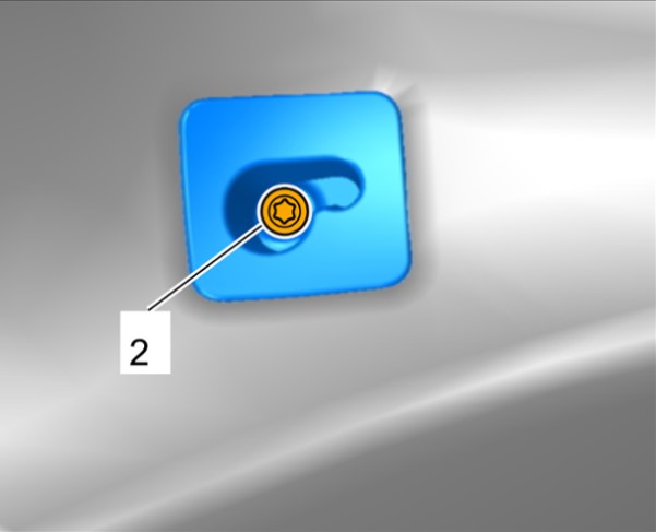 7 Вкрутить винты -2- в крепление накладки сетки в багажном отсеке сзади и затянуть с моментом