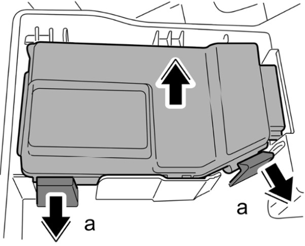 Разблокировать два фиксатора на кронштейне зонда электромагнитного поля -стрелки a- и снять зонд.