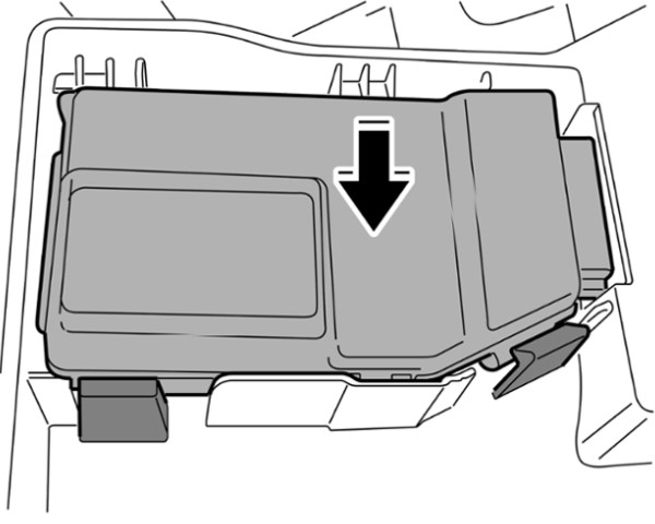 Расклипсовать держатель зонда электромагнитного поля и электропровод на крепежном кронштейне замка ремня безопасности.