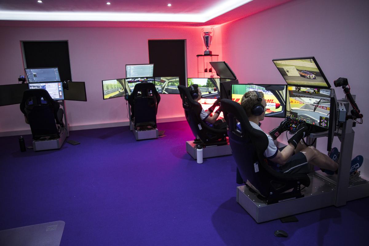 Но главным элементом любого симулятора являются, разумеется, процессоры: у Coanda они практически незаметно спрятаны в основании стендов, которые тоже были сконструированы собственноручно и обладают повышенной жесткостью на кручение. Их пятиядерные процессоры Intel i9 работают на частоте 5 гигагерц. Все компьютеры вплоть до мельчайших деталей идентичны и подключены к общей сети, и все данные стекаются в командный центр Филиппа Штамма. Пока его пилоты тренируются или участвуют в виртуальной гонке, руководитель команды в фоновом режиме следит за тактикой и телеметрией.