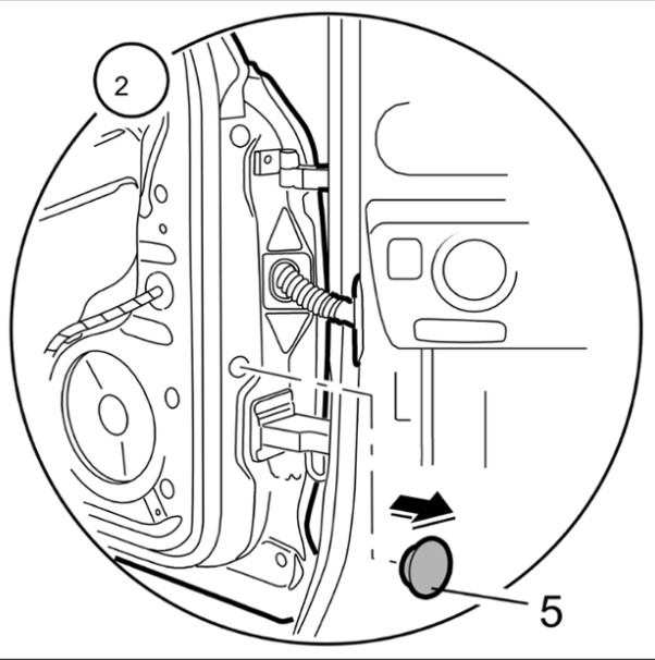 Для снятия крепежной рамы передней двери поднять боковое стекло, чтобы обеспечить лучший доступ к проводке двери.