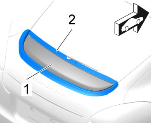 1 Для защиты областей, окружающих нишу спойлера, нанести клейкую ленту -2-.