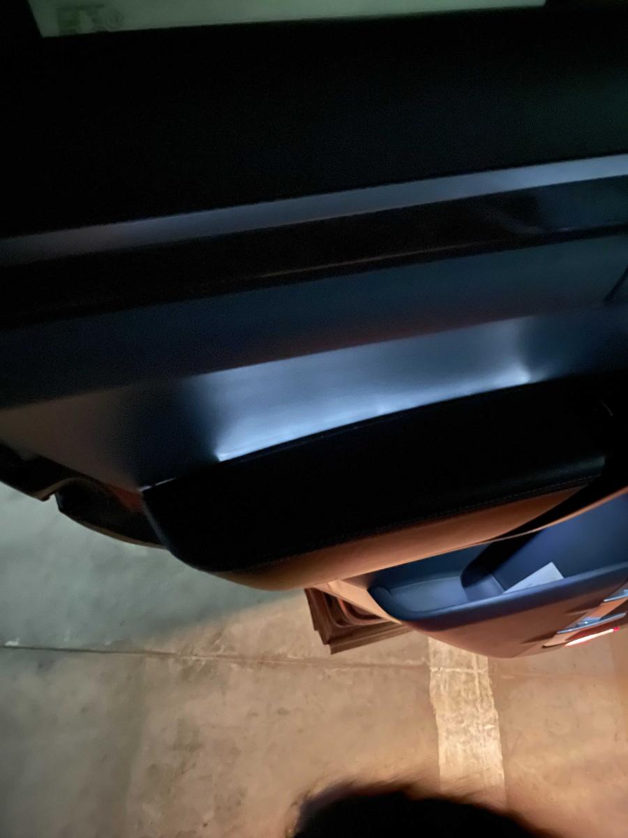 Вопрос по работе контурной подсветки на фото. Почему она работает, только когда открыты двери. В этот момент горят плафоны освещения салона и ее все равно не видно. Выключаешь свет в салоне, она тухнет.
