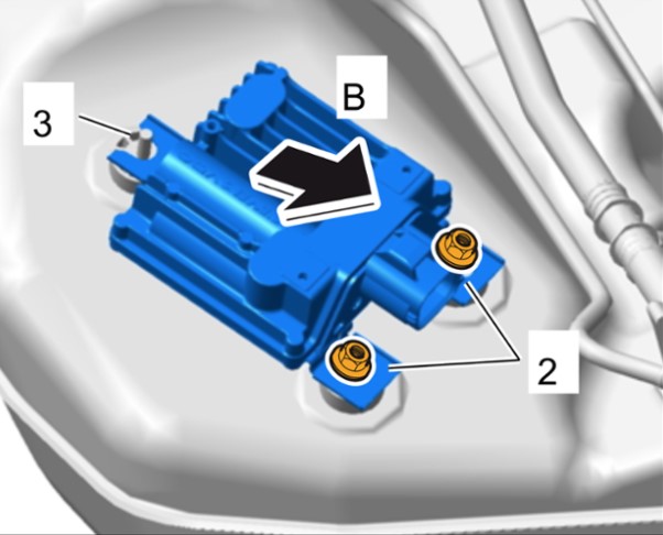 3 Вынуть блок управления топливного насоса из крепления -3--B-.