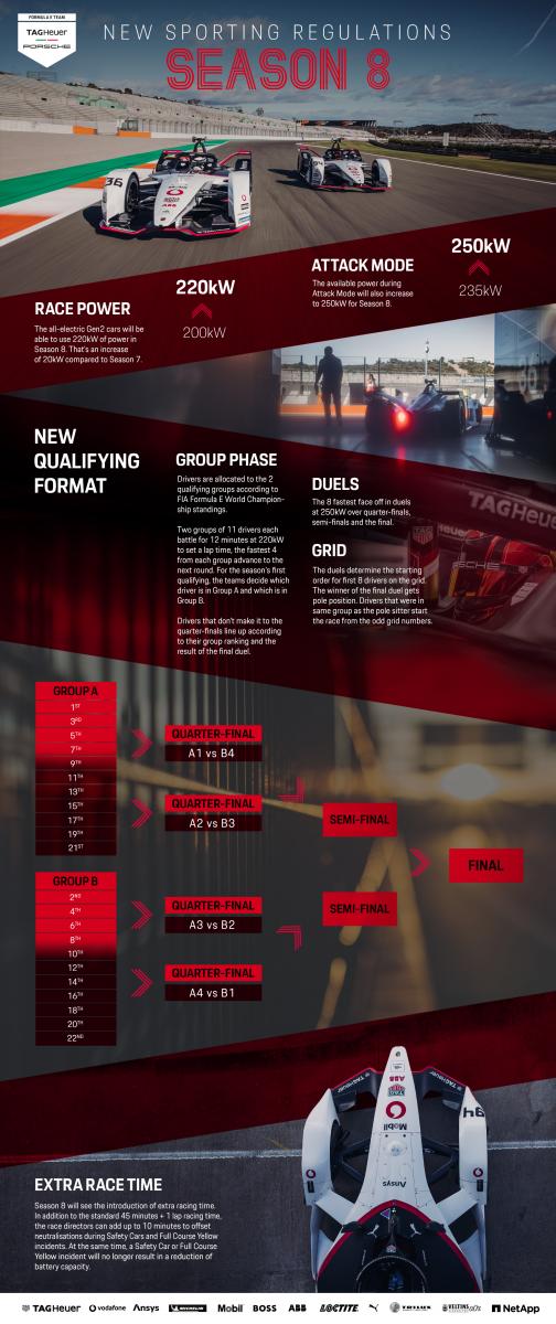 В этом году конкуренция в чемпионате мира ABB FIA Formula E с одиннадцатью командами и 22 гонщиками вновь очень высока. Участникам предстоит провести 16 гонок в десяти крупных мегаполисах. Нововведением в этом сезоне стали некоторые изменения в регламенте, касающиеся гонок и прежде всего квалификации. Там борьба за поул-позицию будет проходить в турнирном формате с жесткими прямыми дуэлями между пилотами. Кроме того, была увеличена максимальная мощность в режиме квалификации и режиме атаки.