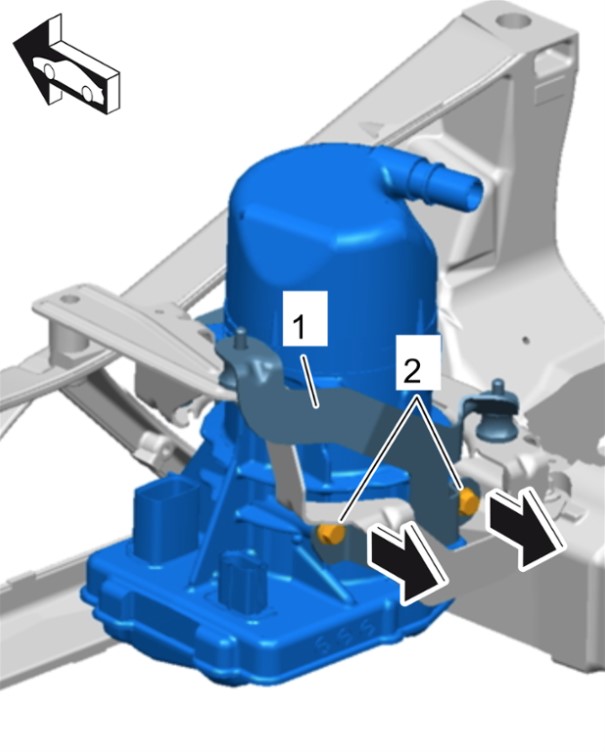 3 Демонтировать гидравлический насос с заднего держателя (держатель остается на автомобиле!). Для этого отвернуть два крепежных винта M6 -2- сзади на гидравлическом насосе.