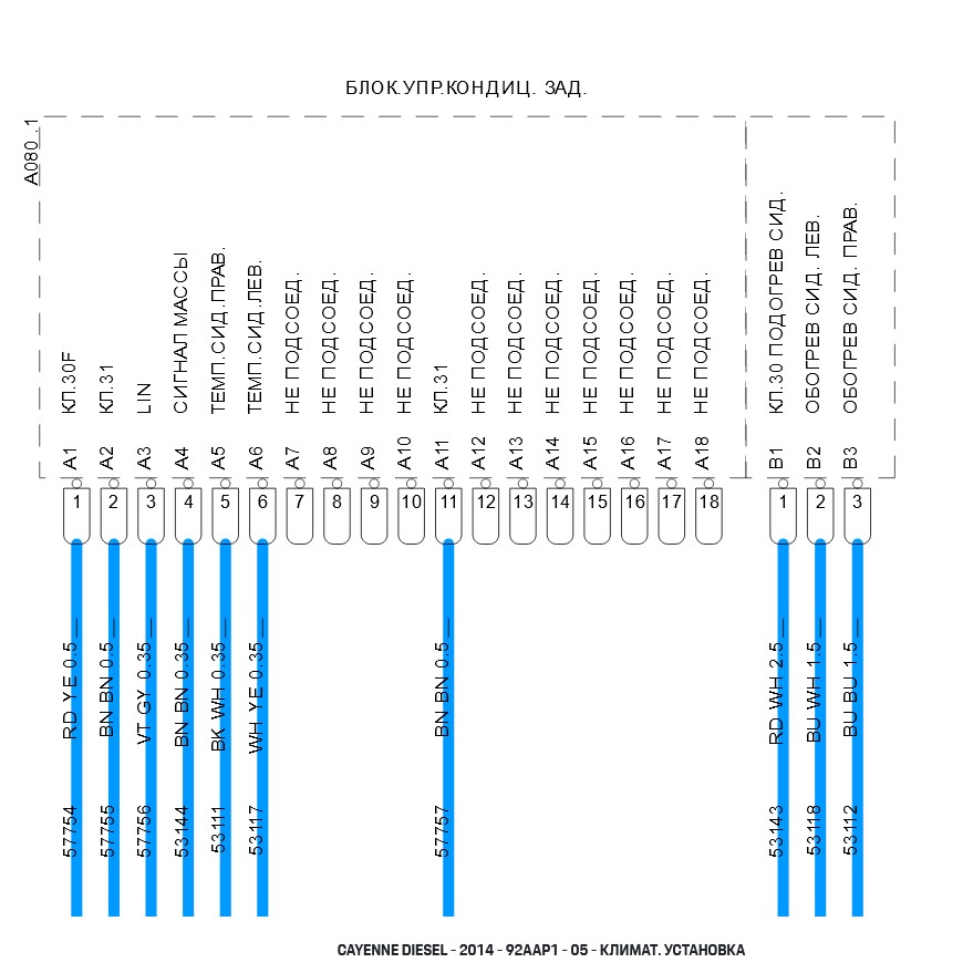 На обратной стороне блока управления задним климатом два разъёма. Один с тремя жирными усиками. И второй с кучей тоненьких.