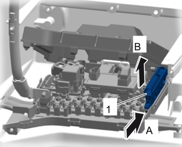 7 Отсоединить главный выключатель -1--A- и переместить его вниз -B- .