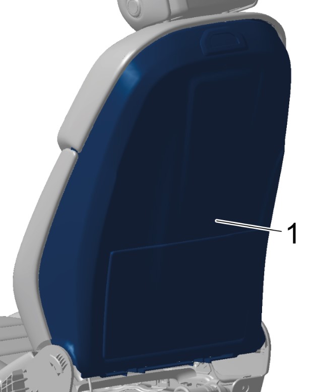 7 Слегка потянуть назад накладку спинки -1- снизу, а затем снять ее в направлении вниз.