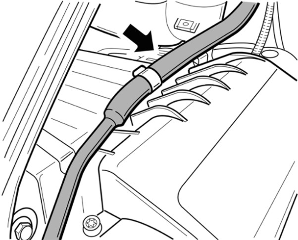 6 На крышке корпуса воздушного фильтра ряда цилиндров 1 - 4 следует расклипсовать шланг расширительного бачка, предназначенный для удаления воздуха из ОЖ.