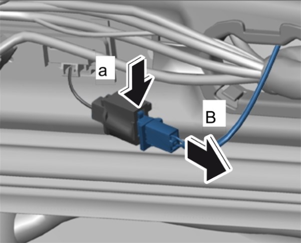 1 Разблокировать электрический разъем антенного кабеля -a- и отсоединить его -B-.