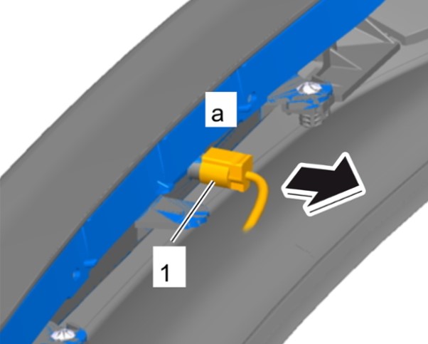7 Разблокировать электрический разъем -1- дополнительного стоп-сигнала -a- и отсоединить его -стрелка-.