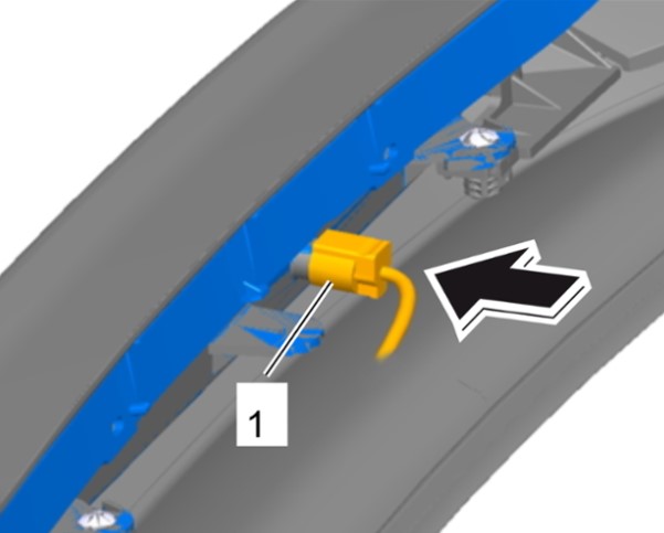 2 Вставить электрический разъем -1- дополнительного стоп-сигнала -стрелка- до ощутимого защелкивания разъема.
