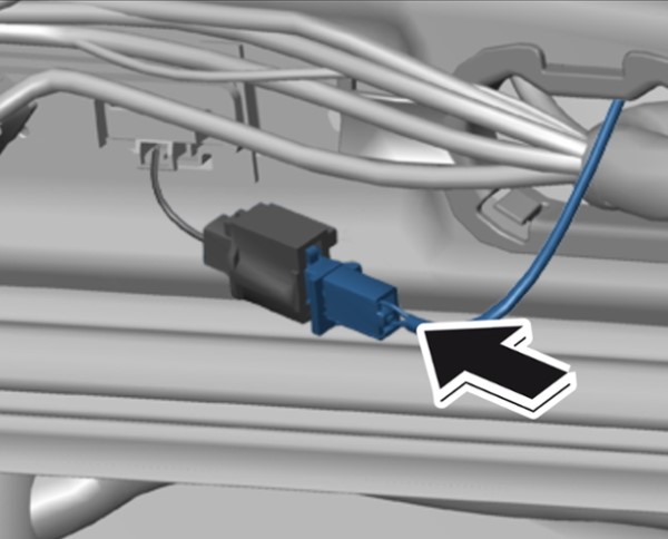 8 Вставить электрический разъем антенного кабеля -стрелка- до ощутимого защелкивания разъема.