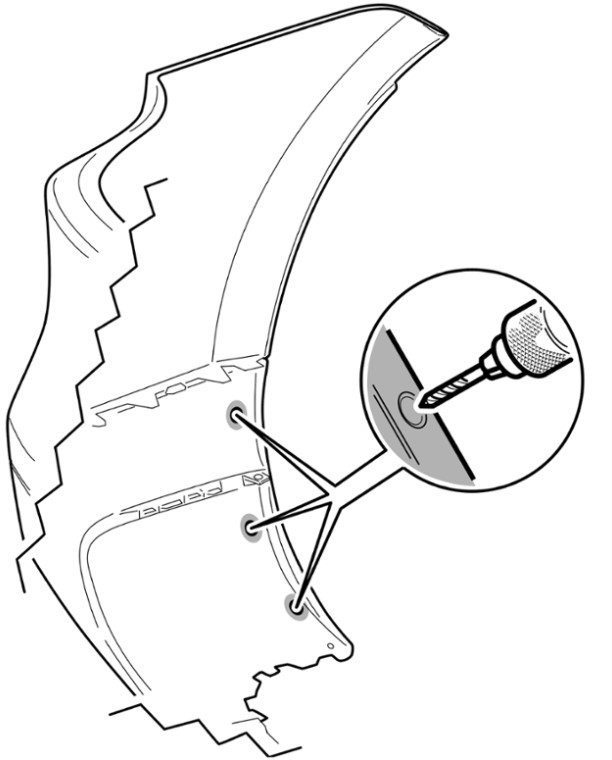 1.2 Просверлить отверстия с диаметром 8 mm по меткам бампера изнутри.