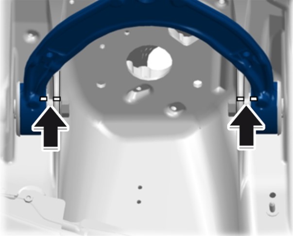 Если верхний рычаг подвески будет повторно использоваться, то необходимо пометить его положение по отношению к кузову -стрелки-, например, фломастером (помощь при монтаже).