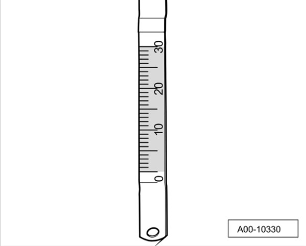 Задвинуть прибор для проверки индикатора уровня масла до упора (установочное кольцо) в трубку для маслоизмерительного щупа, затем снова вынуть его и считать уровень масла.