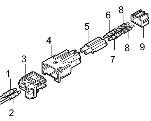 Серые контакты используются в месте сопряжения: жгут проводов >> блок управления (оптический вход).