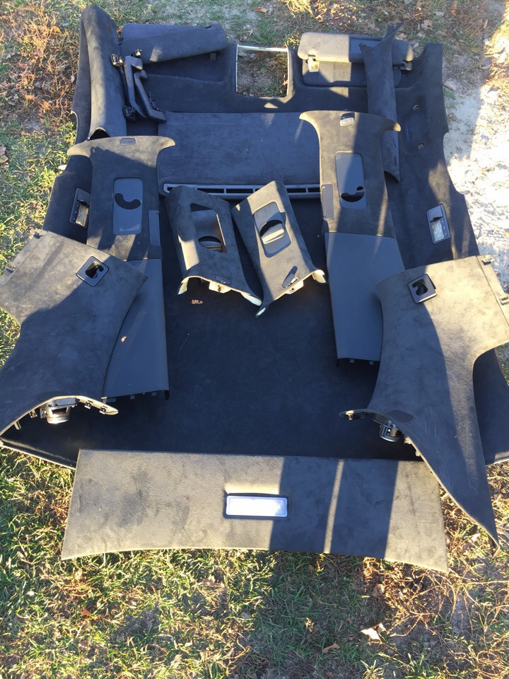 Продам комплект алькантары 955/957.Оригинал.Цвет чёрный.Под люк.В комплект входит:потолок,все стойки,ручки,плафоны задние,индикатор парктроников задний,солнцезащитные козырьки.Цена 20000р