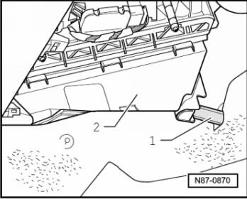 – Проверить клапан -1- снизу при поднятом автомобиле.