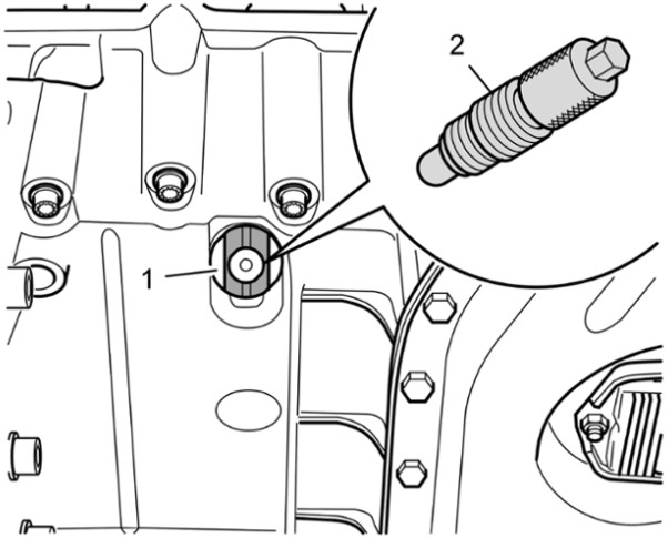 T40060 - Установочный штифт (-3-) имеет плоское место -2-, которое облегчает установку установочного штифта -3- в случае небольшого смещения отверстий для фиксации распределительного вала и головки блока цилиндров.