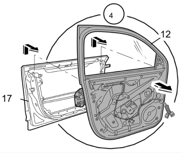 Вставить резиновую втулку -7- между дверью и стойкой A.