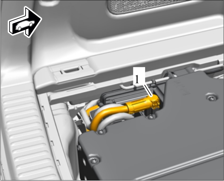 3 Подсоединить и заблокировать высоковольтный провод на высоковольтной АКБ -1-.