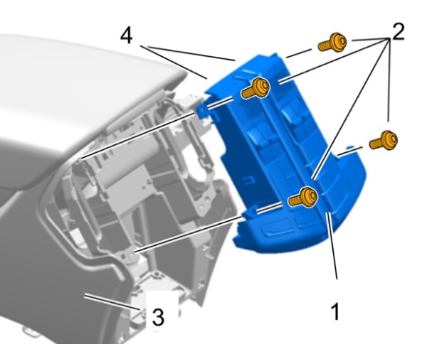 1 Вывернуть винты -2- задней панели управления системы кондиционирования -1- из центральной консоли -3-.