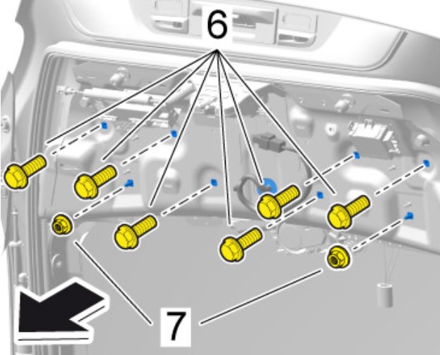 3 Для защиты областей, окружающих нишу спойлера, нанести клейкую ленту -2-.