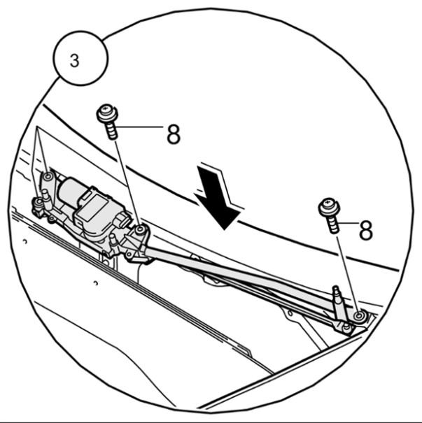 Установить тяги на вал стеклоочистителя, измерить размер -X- = 4 мм между механическим упором и кривошипом электродвигателя стеклоочистителя затянуть крепежной гайкой -9-. Момент затяжки 18 Nm