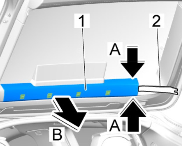 2.2 Снять среднюю облицовку рамы стекла -1- с помощью подходящего инструмента -2-.