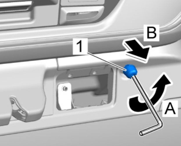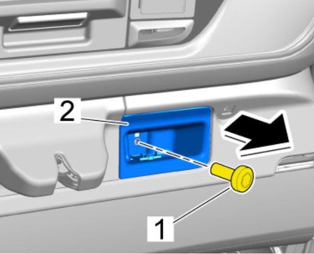 4.1 С помощью отвертки разблокировать накладку -1- крепежного винта в ручке.