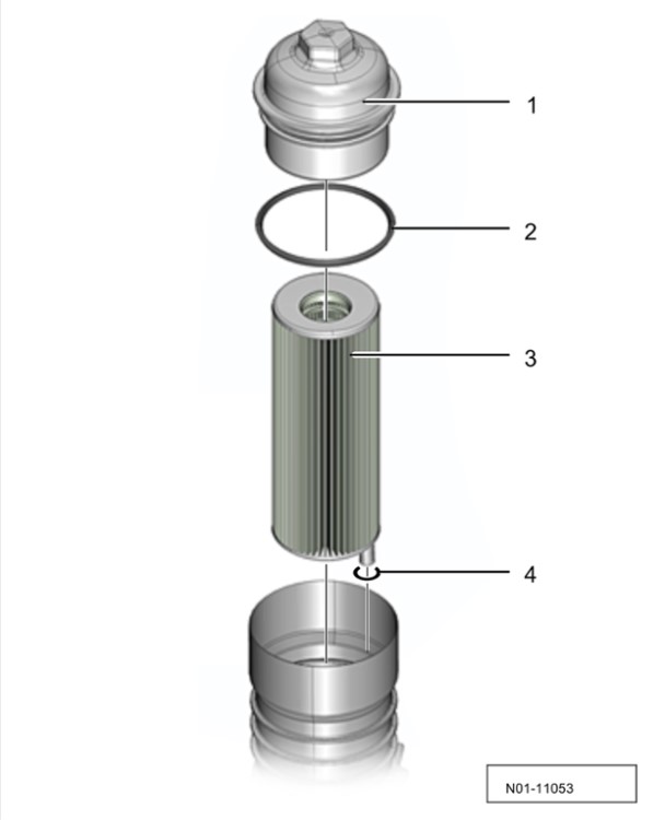 Уплотнения 2 и 4, а также фильтрующий элемент масляного фильтра 3 необходимо заменить.