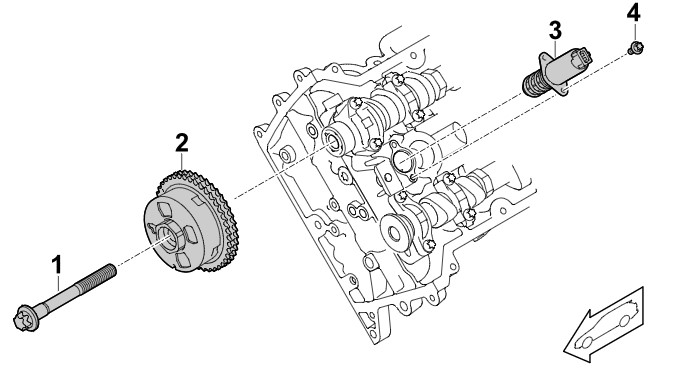 1 - Винт M12, полная затяжка после регулировки фаз газораспределения!; винт не следует менять для регулировки
