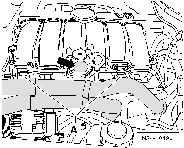 – Присоединить ручной вакуумный насос к вакуумному приводу -стрелка-.