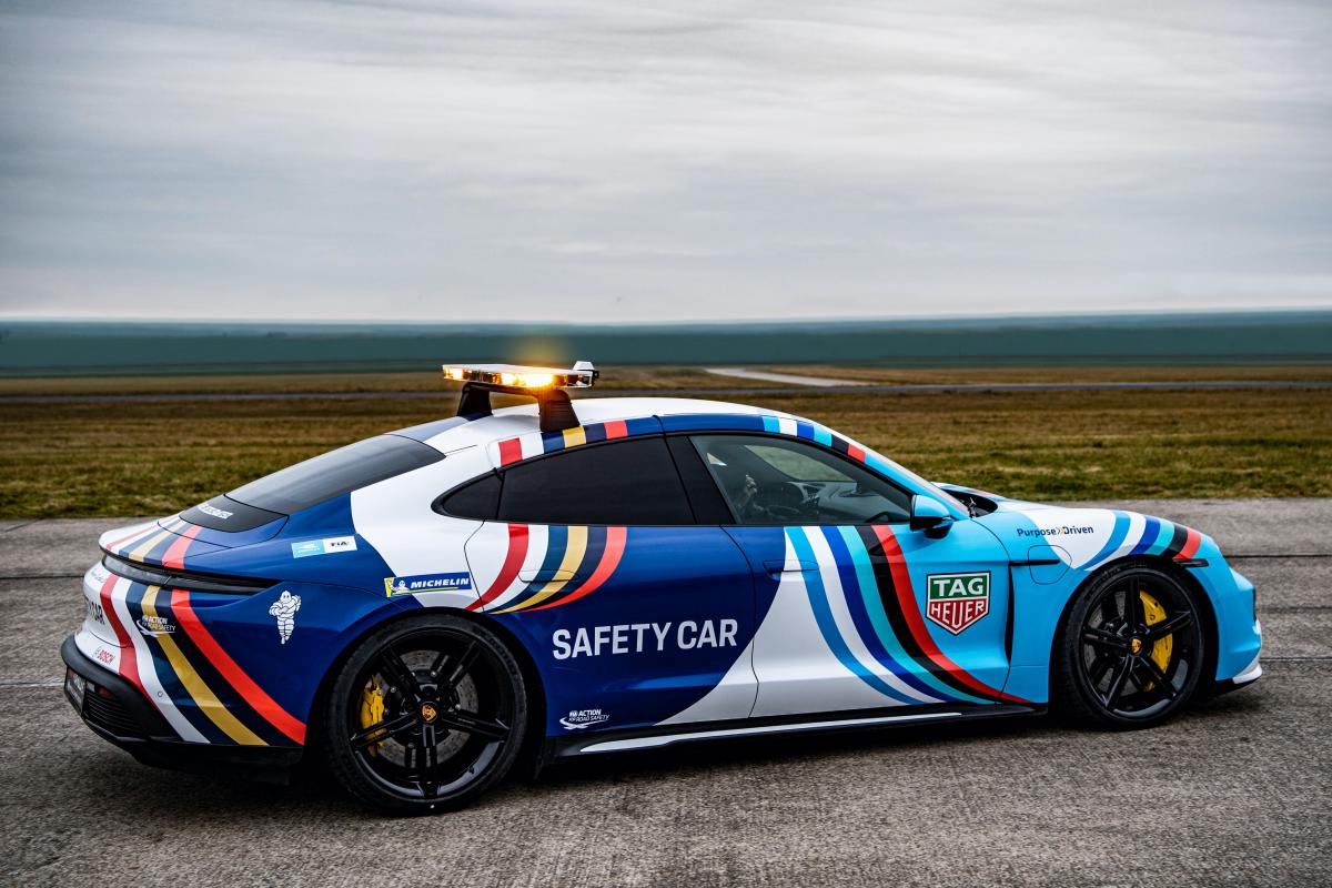 В Эд-Диръия свою премьеру на гоночной трассе в качестве автомобиля безопасности чемпионата мира ABB FIA Formula E празднует Porsche Taycan Turbo S. Благодаря своей послушности в управлении и надежности, а также мощности 560 кВт (761 л.с.) первый чисто электрический спорткар Porsche идеально подходит для использования в качестве автомобиля безопасности в первой в мире чисто электрической гоночной серии. Топ-модель модельного ряда Taycan разгоняется с места до 100 км/ч (с включенной функцией Launch Control) всего за 2,8 секунды и достигает максимальной скорости 260 км/ч. Число «22», которое можно видеть на крыше автомобиля, указывает, что в восьмом сезоне чемпионата мира ABB FIA Formula E соревнуются двадцать два гонщика. Автомобиль «одет» в броскую ливрею, в которой можно найти цвета всех одиннадцати команд, а также FIA и Formula E. Тем самым он символизирует приверженность всех участников полностью электрическому будущему автоспорта и такие общественные ценности, как многообразие и общность.