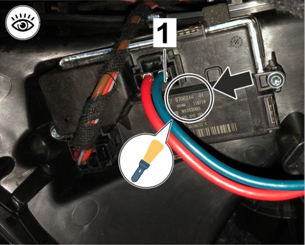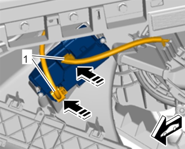 2.4.1 Разблокировать и отсоединить электрические штекерные соединения -1- на регуляторе вентилятора -стрелка-.