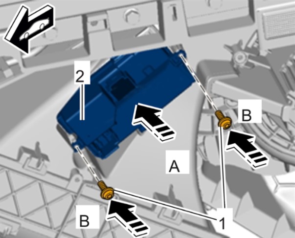 2.4.2 Выкрутить винты -1--стрелки A- и извлечь регулятор вентилятора -2--стрелка B-.