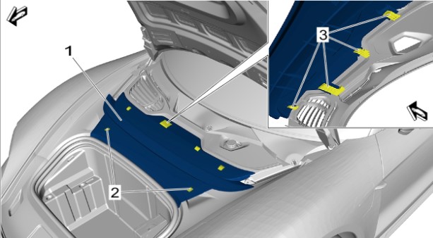 9J1 - Taycan (Y1A) - производство 2020 >> (S) Демонтаж и монтаж накладки водоотводящего короба (спереди)