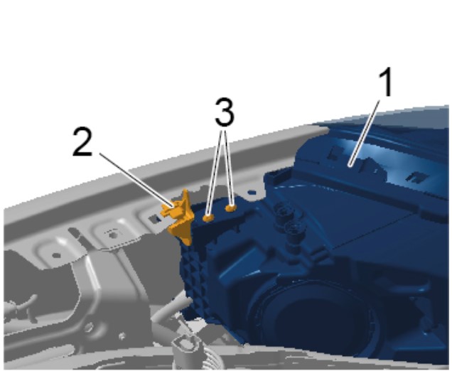 Выкрутить крепежные винты -3- и снять скобу -2- с фары -1- .