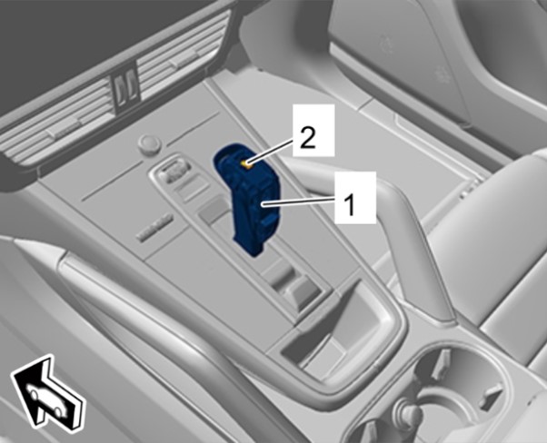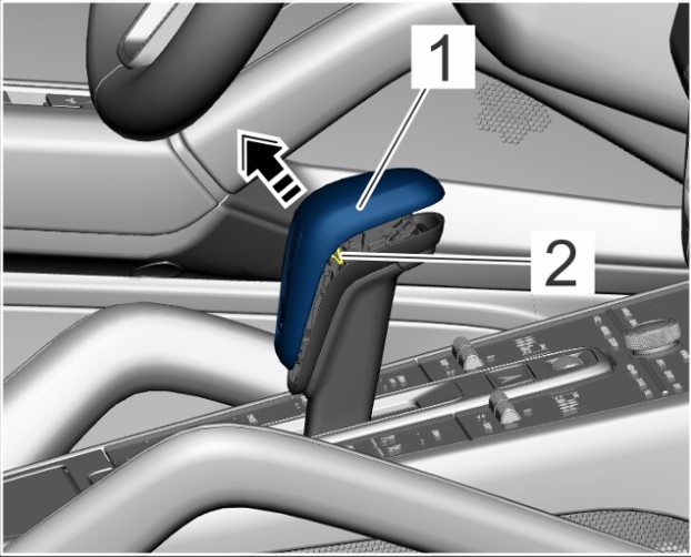 Снять накладку рукоятки селектора -1- движением наверх и -2- извлечь из креплений.