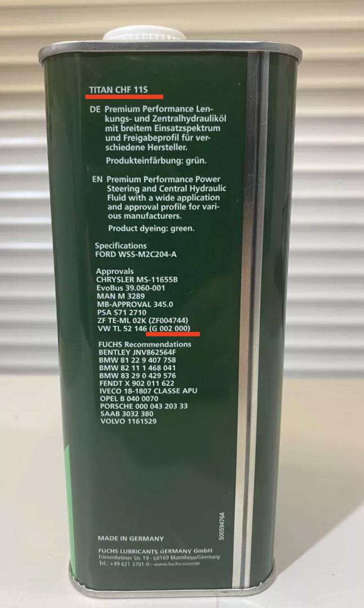 3. У 11s допуск порше (G 002 000) - и именно такой номер указан на обоих бачках у меня. Значит и заливать нужно 11s верно? Просто раньше я заливал CHF 202