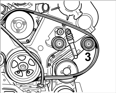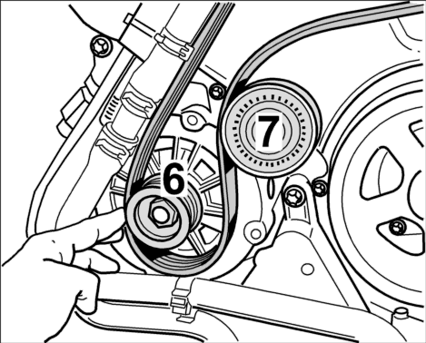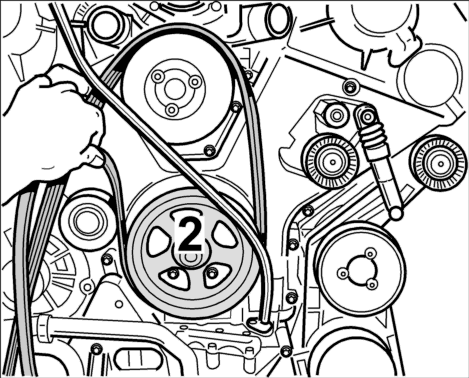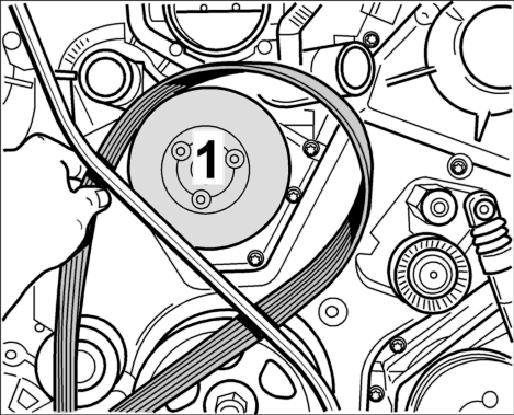 1. Сжать приводной ремень в петлю и провести его за маслоизмерительным щупом над шкивом коленвала.