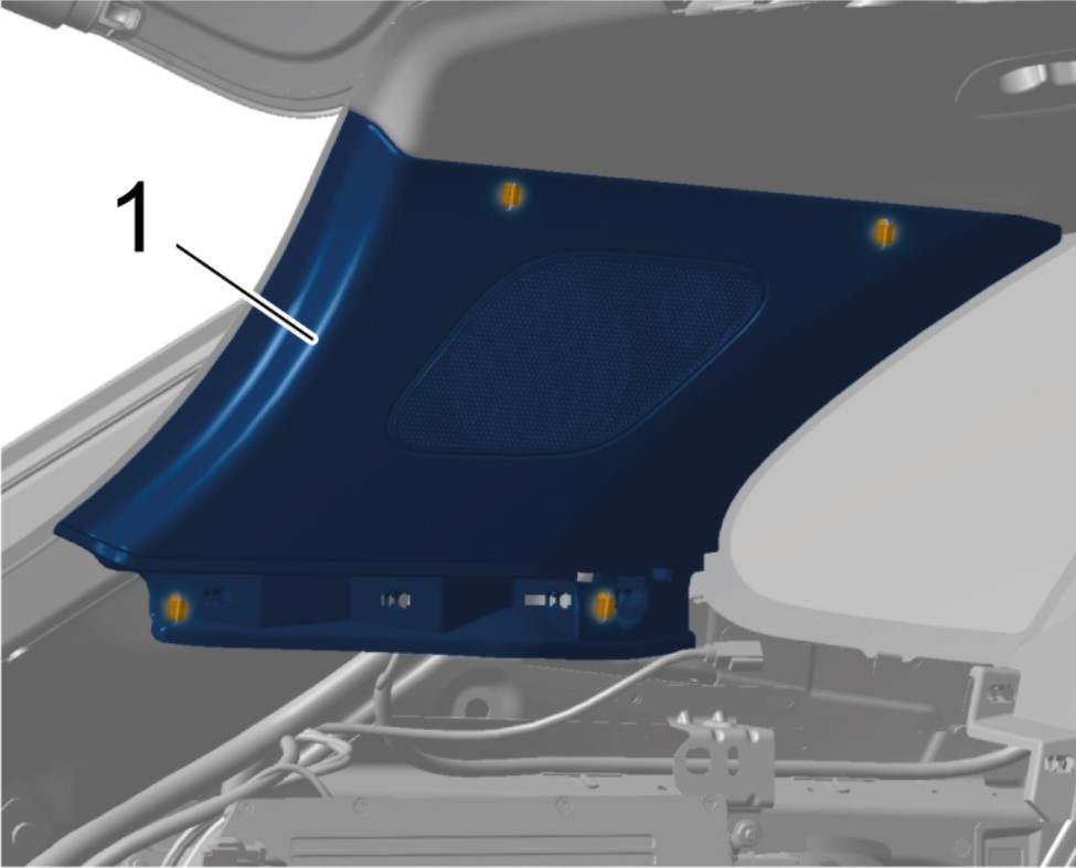1 Ввести облицовку стойки D, следя за тем, чтобы направляющие выступы заняли правильное положение.
