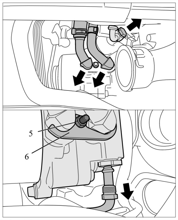 После замены отдельных или нескольких компонентов, таких как гидравлический насос (тандемный гидравлический насос), рулевой механизм, блоки клапанов PDCC (передней оси/задней оси), стабилизаторов PDCC (передней оси/задней оси) необходимо обязательно также менять расширительный бачок.