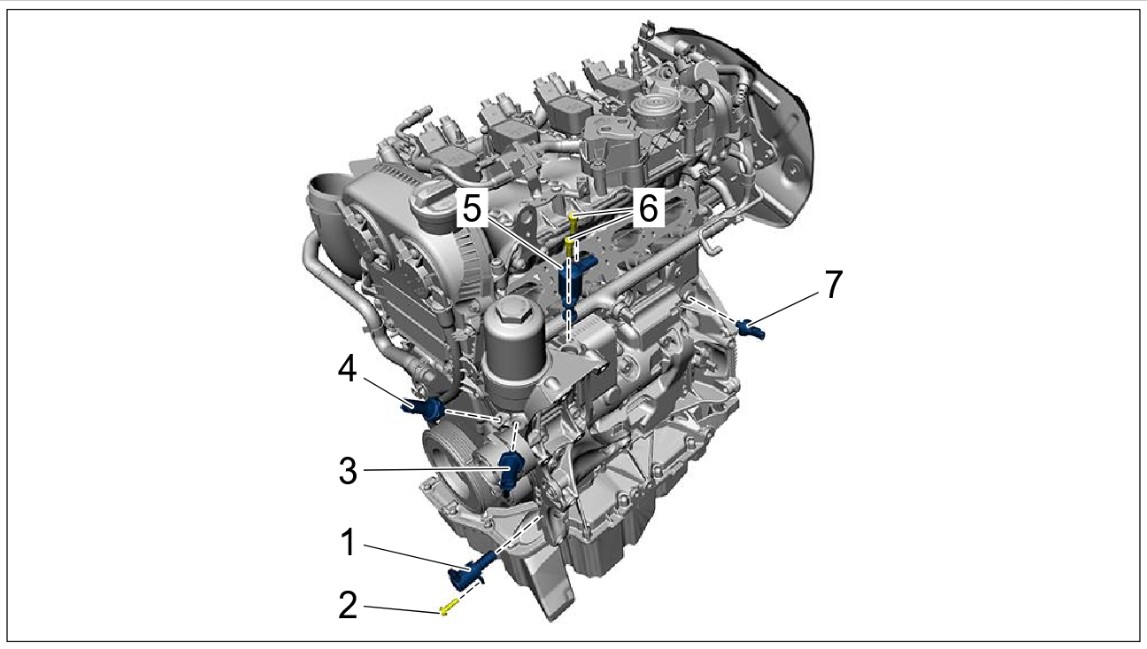 4 Проверьте давление моторного масла (масляных форсунок) с помощью тестера PIWIS.