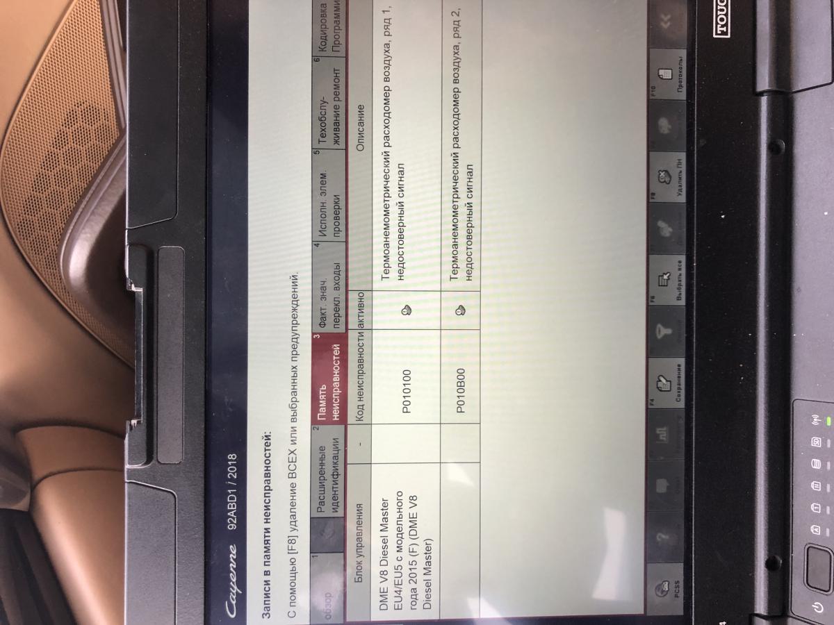 Кайен s дизель 4.2  wp1zzz92zjla65412 ошибка по расходомерам воздуха по обоим, машина не тянет, ошибки удаляемые, бывает вылазят только на второй третий день а могут и через час, все тесты машина проходит , расходомеры менялись, наддув есть